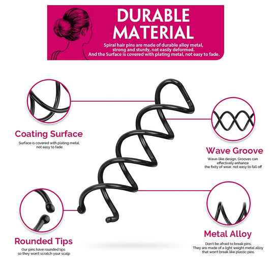 Casewin 20Pcs Spiral Hair Pins, Rotating Pin Non-Scratch round Tips, Twist Screw Hair Pin for Women Bun Hair Style DIY, Spiral Bobby Pins Black